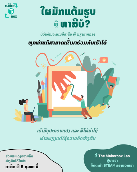 Makerbox Lao is a collaborative work space for making, learning, exploring and sharing that uses high tech to no tech tools for kids, adults, and entrepreneurs.